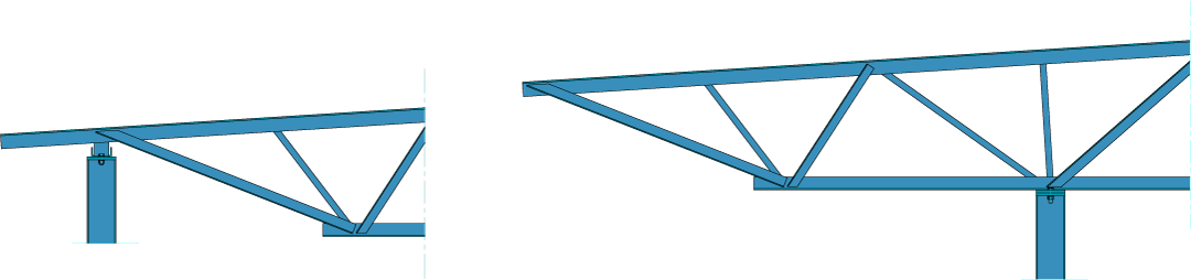 Vid överkragningar upp till 1000 mm beroende på överramens dimension längs endast överramen. Större överkragningar löser man med att förlänga hela fackverket ut.