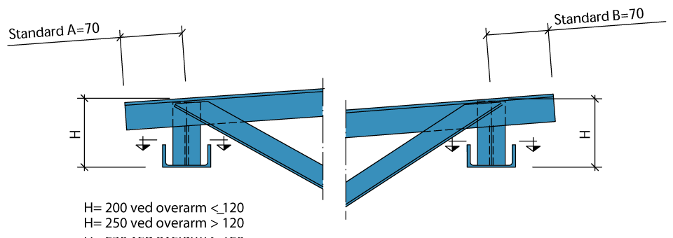 Knutepunktene i fagverket må alltid tilpasses etter åsdelingen. Annen åsdeling enn angitt i tabellen kan naturligvis forekomme, velg i så fall nærmeste høyere åsdeling for å være på den sikre siden.