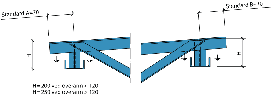 I de fleste tilfeller løses dette med innspenning av bjelken i takplatene eller takåsene.