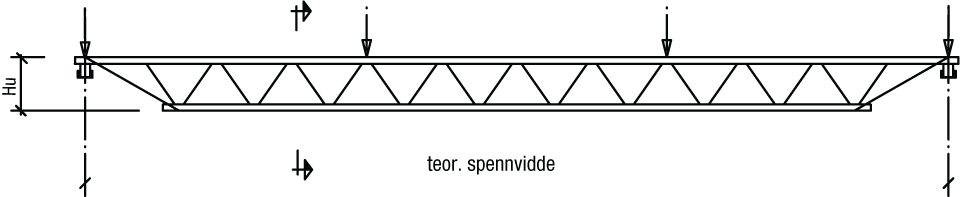 Fagverksbjelken får normalt overhøyde for egenvekt tak + halv redusert snølast.