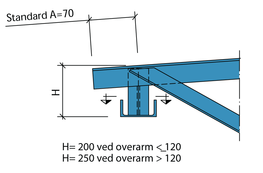 Diagonal U65   Oppleggshøyde